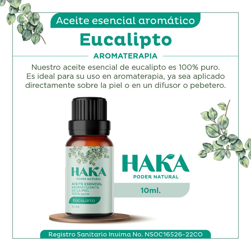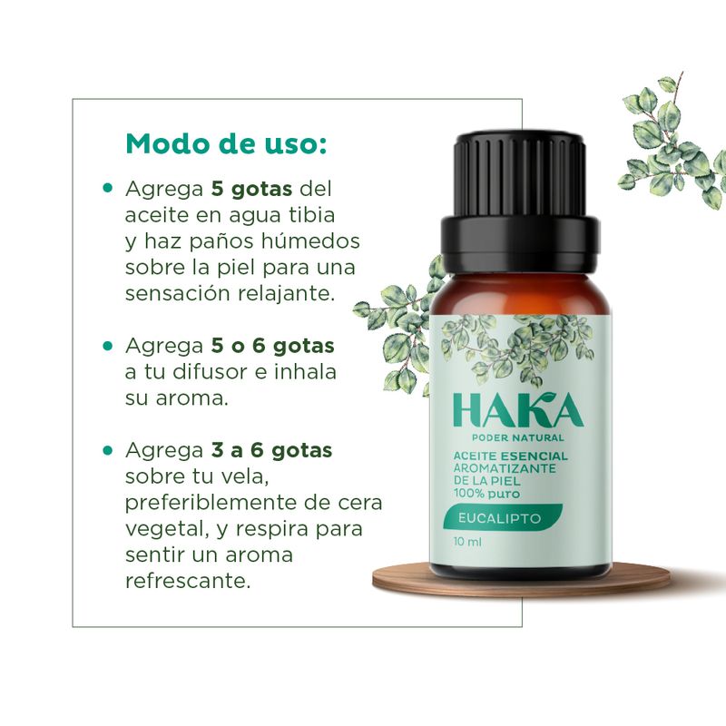 El aroma del aceite esencial de eucalipto brinda un efecto refrescante y sensación de aire puro y te ayuda a enfocarte en las actividades del día a día.