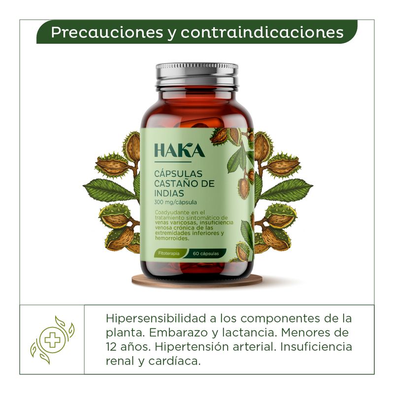 Cada cáspulas contiene polvo seco de semillas de Castaño de Indias (Aesculus hippocastanum L).