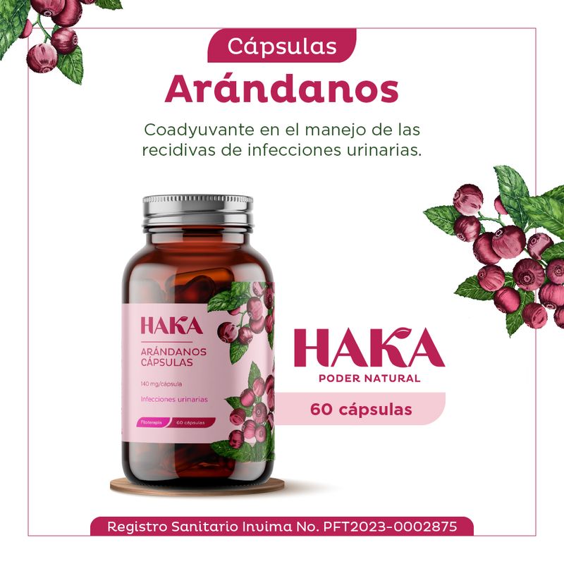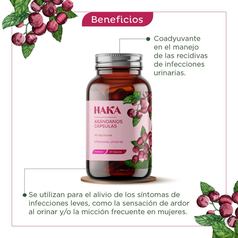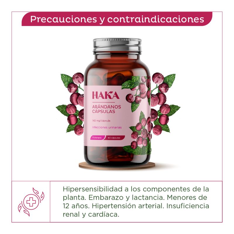 Cada cápsula contiene extracto seco del fruto del Arándano. (Vaccinium Macrocarpon Aiton) Equivalente a 35 mg de Antocianidinas.