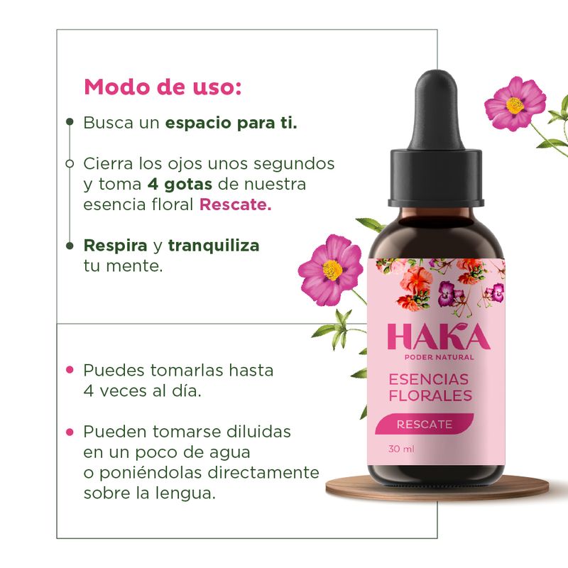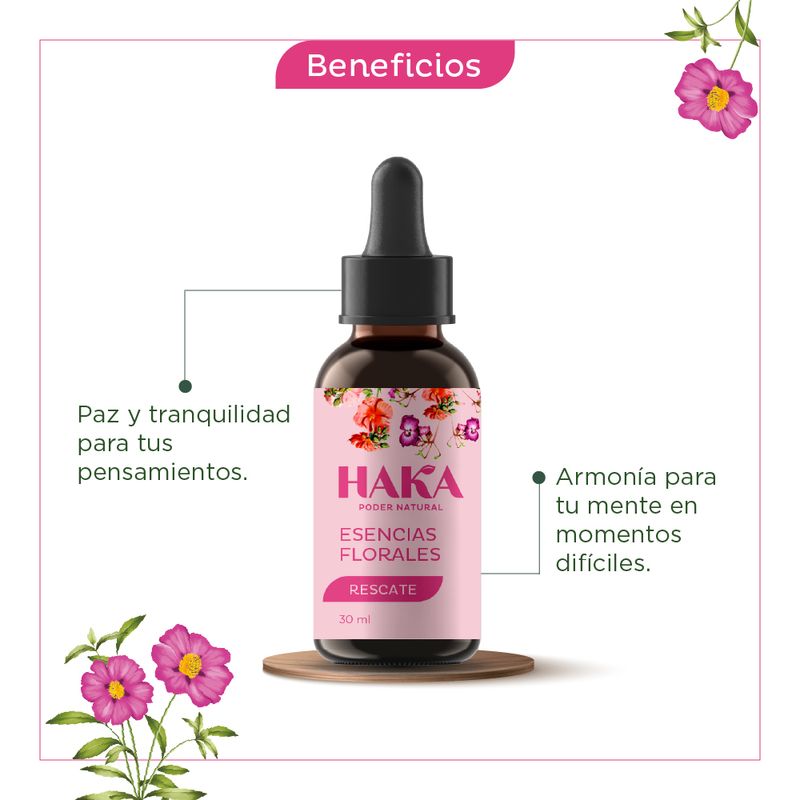 Nuestra esencia floral Rescate es una mezcla de las flores: clematis, impaciencia, Cherry Plum, entre otras.